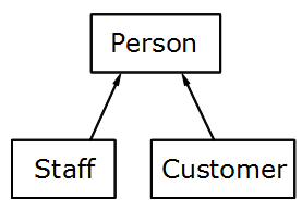In this way objects of type Staff and Customer inherit all aspects (state and behaviour) of the supertype Person. Any instance of Staff or Customer is also an instance of Person. A Customer IS A Person.